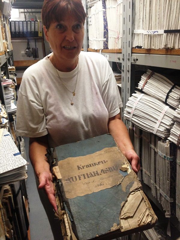 V archívu jsou tisíce spisů ze všech oddělení nemocnice. Ze zákona je dáno, že archivace je nutná po dobu čtyřicet let. „Teď tady máme záznamy od roku 1973,“ upřesňuje archivářka Lenka Lokvencová. Kromě toho se jí ale podařilo uchovat skvosty, které se už málem rozpadají v rukách.