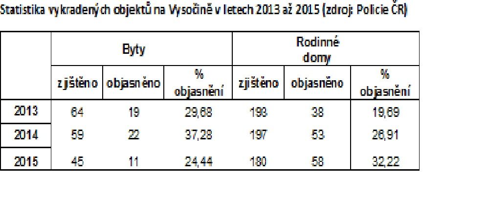 Policejní statistiky naznačují, že druhý rok po sobě klesl na Vysočině počet vykradených domácností. V roce 2014 zloději vykradli 256 bytů a rodinných domů, loni už jen 225.