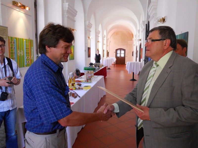 Certifikát za různými technikami zdobené kraslice, pomlázky a háčkované velikonoční a vánoční ozdoby od žen z Komunitní školy Krok za krokem občanského sdružení Rychlov Kněžice převzala Jitka Ludmilová, předsedkyně neziskové organizace. Dalším oceněným byl Luboš Nosek z Kostelní Myslové z Telčska, který certifikát získal za med, medovinu a medové placičky a posledním certifikovaným výrobkem byl jablečný mošt od Petra Procházky z Telce.Autor: Eva Vorálková
